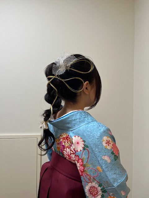 長い髪なので、ポニーテールにしました。